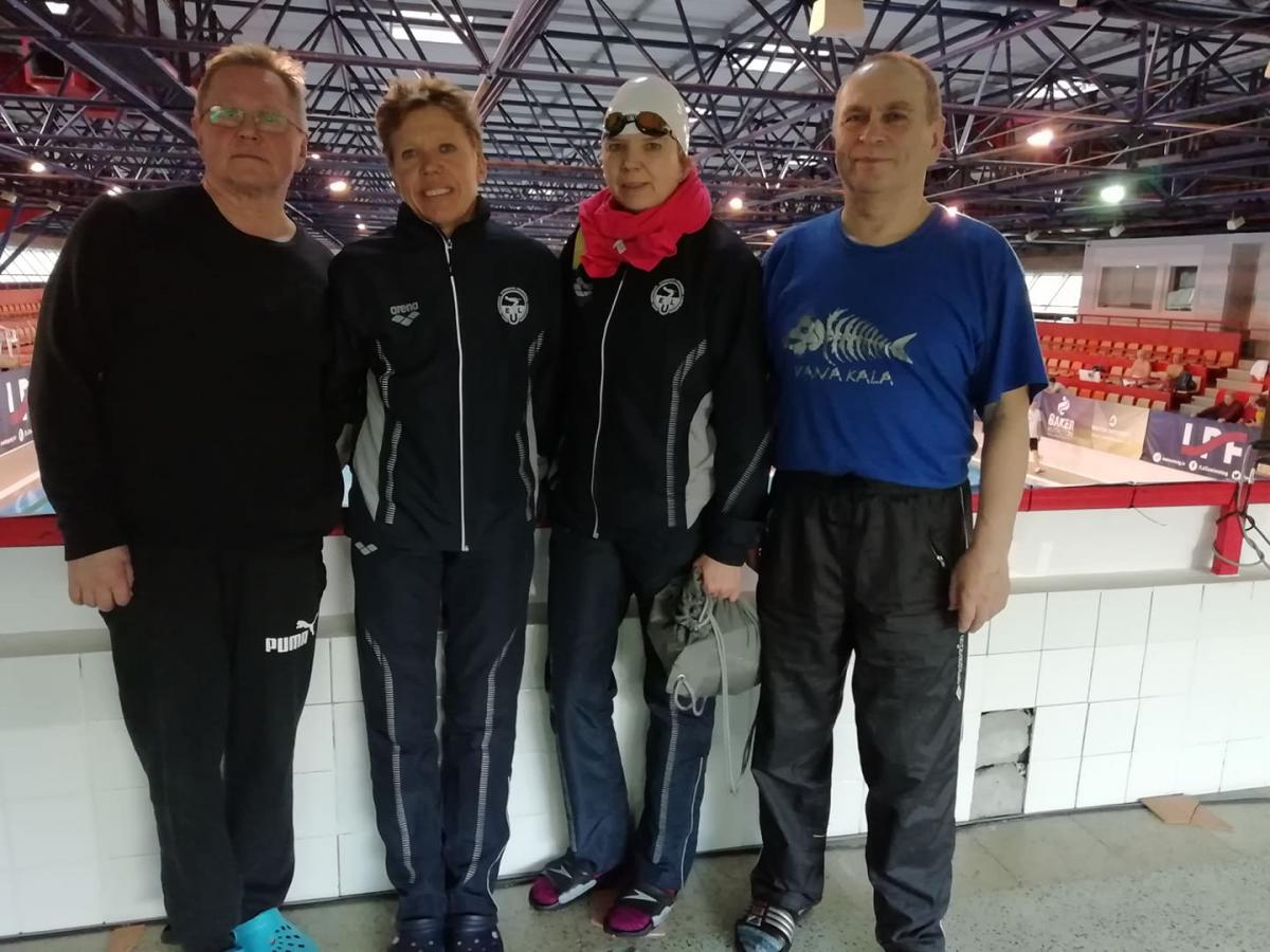 Läti lahtised meisterujumise MV 2019 Tiia ja Merle, taamal Eili ja Ossi Merle ja Eili IMG 20190504 183953 4x50_vabalt_segavõistkond U-klubilased Õhtusöök mitmele